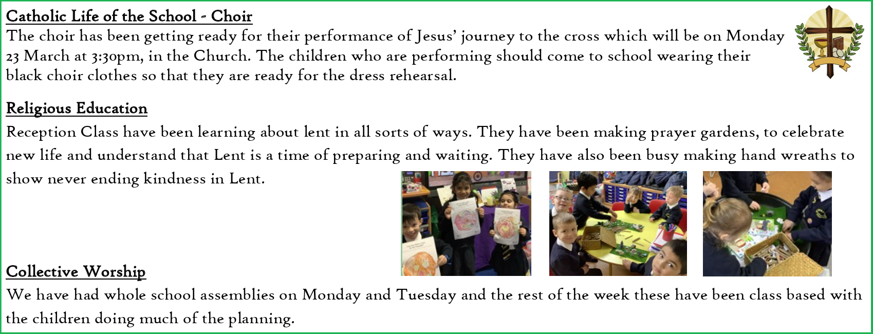 In every aspect of school life, we seek to grow in faith and unity, recognising and celebrating the presence of Christ among us. Together, we nurture faith, inspire hope, and share God’s love in our world.