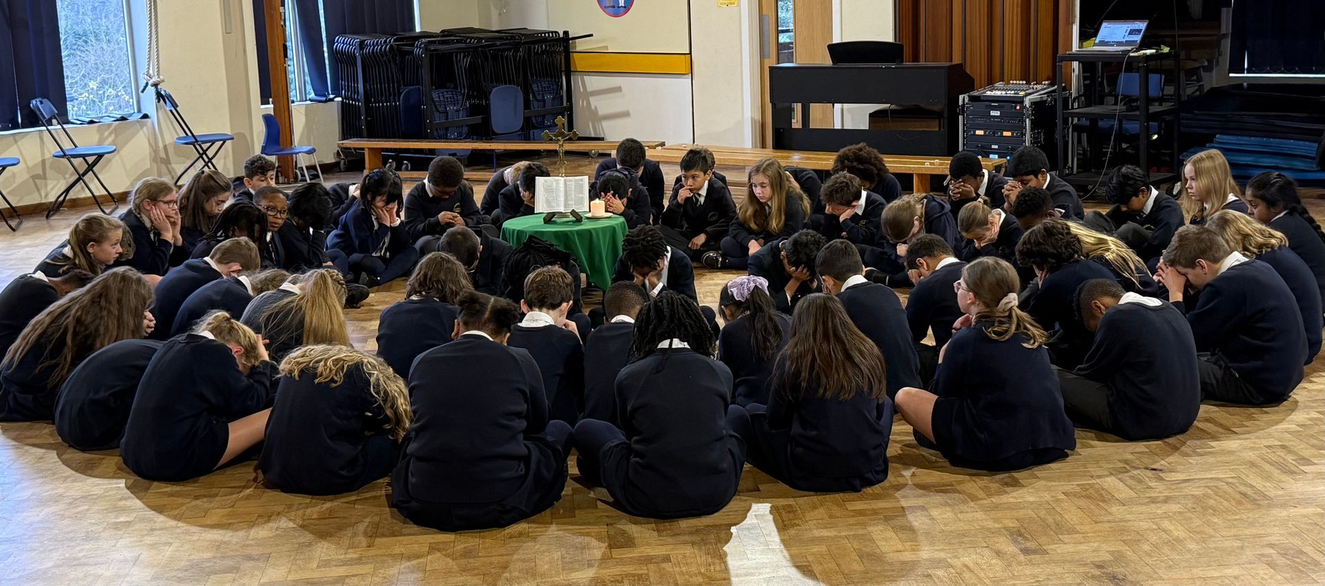 Each day begins and ends with prayer, providing quiet moments for reflection and thanksgiving. Our classroom prayer areas are places where children feel comfortable speaking to God in their own words, sharing joys and worries alike. Collective worship takes many forms - from simple class prayers to whole-school liturgies and Masses that mark the seasons of the Church year.